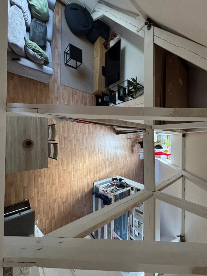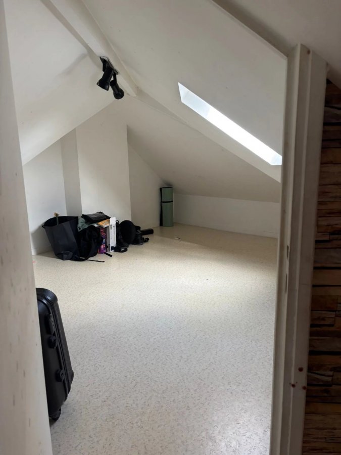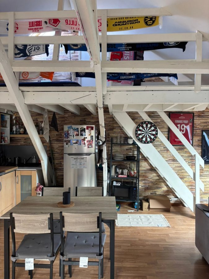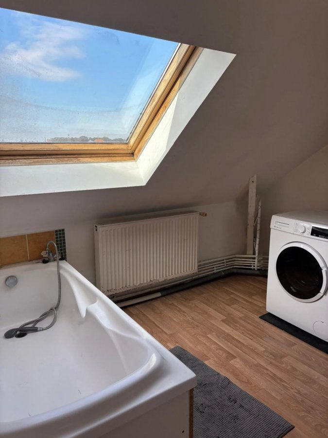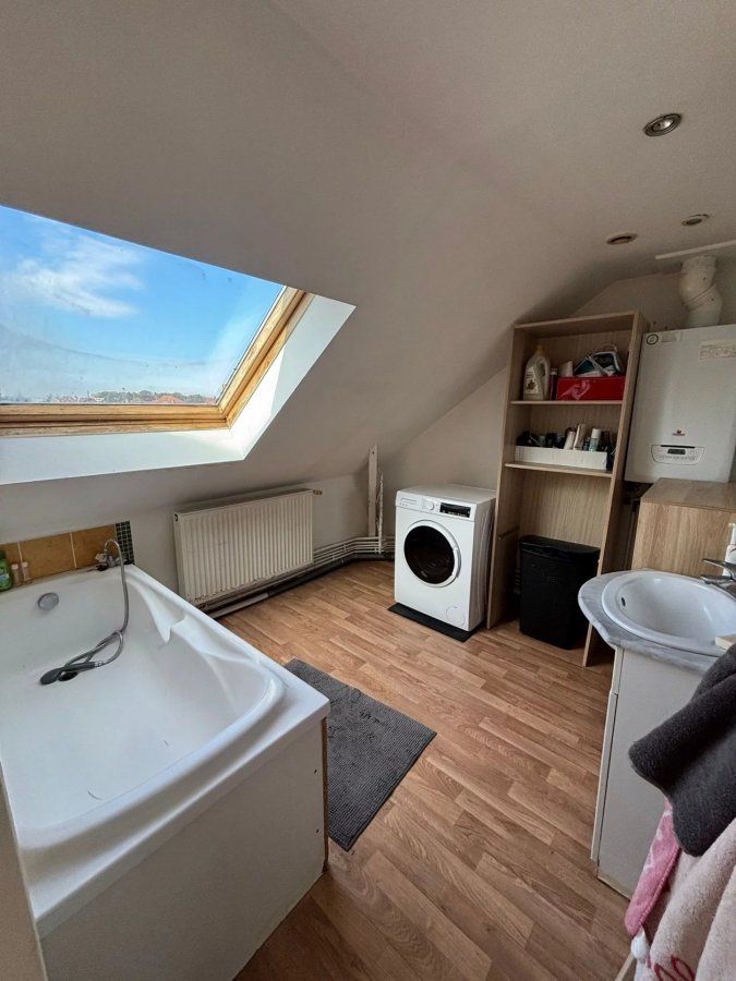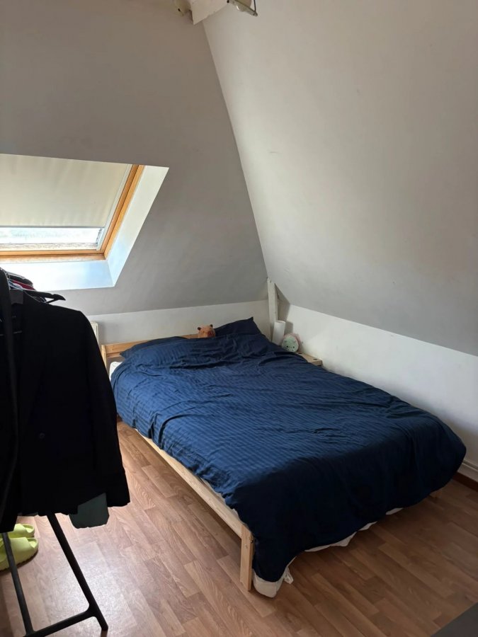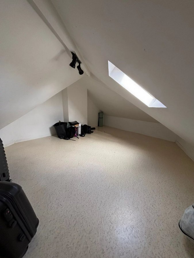 12 rue de la gare LesquinDans une petite copropriété, appartement charmant dans les toits en duplex offrant séjour/Cuisine ( four , plaques, hotte, élèments de rangement haut et bas ) chambre, et bureau.