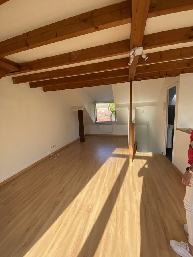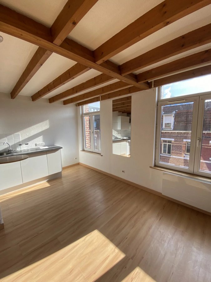 Lille Euratechnologie -8 Rue KantAu bord de l'eau , dans petite copropriété ,appartement de type 2 , en duplex traversant , lumineux , offrant séjour , cuisine ouverte( plaques de cusuison ,hotte , four micro ) , salle de bain , chambre ( grande mezzanine avec placards )
